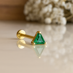 Triangle Cut Emerald Flat Back Stud Earrings in Solid 14k Yellow Gold