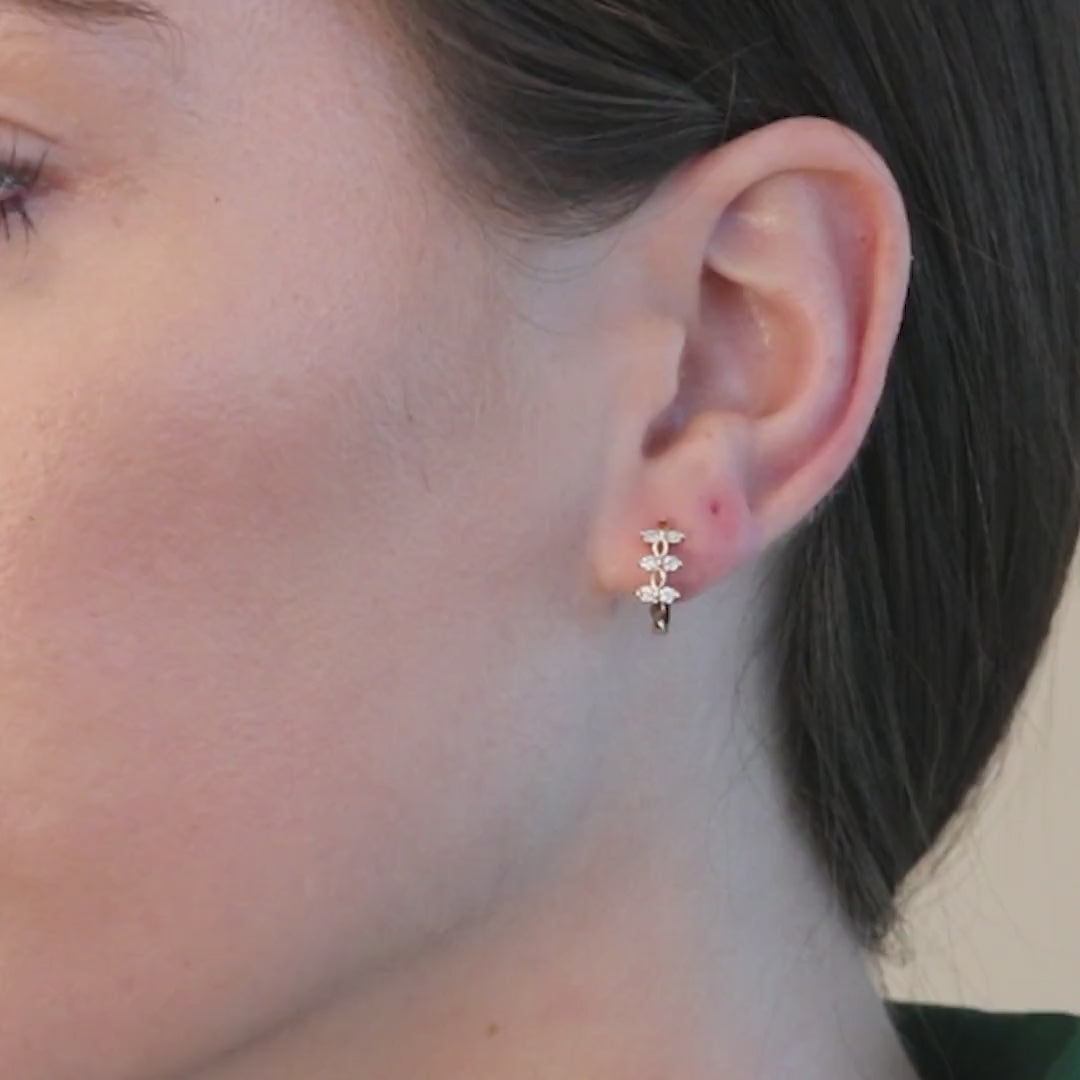 Triple Diamond Huggie Earrings in Solid 14k White Gold