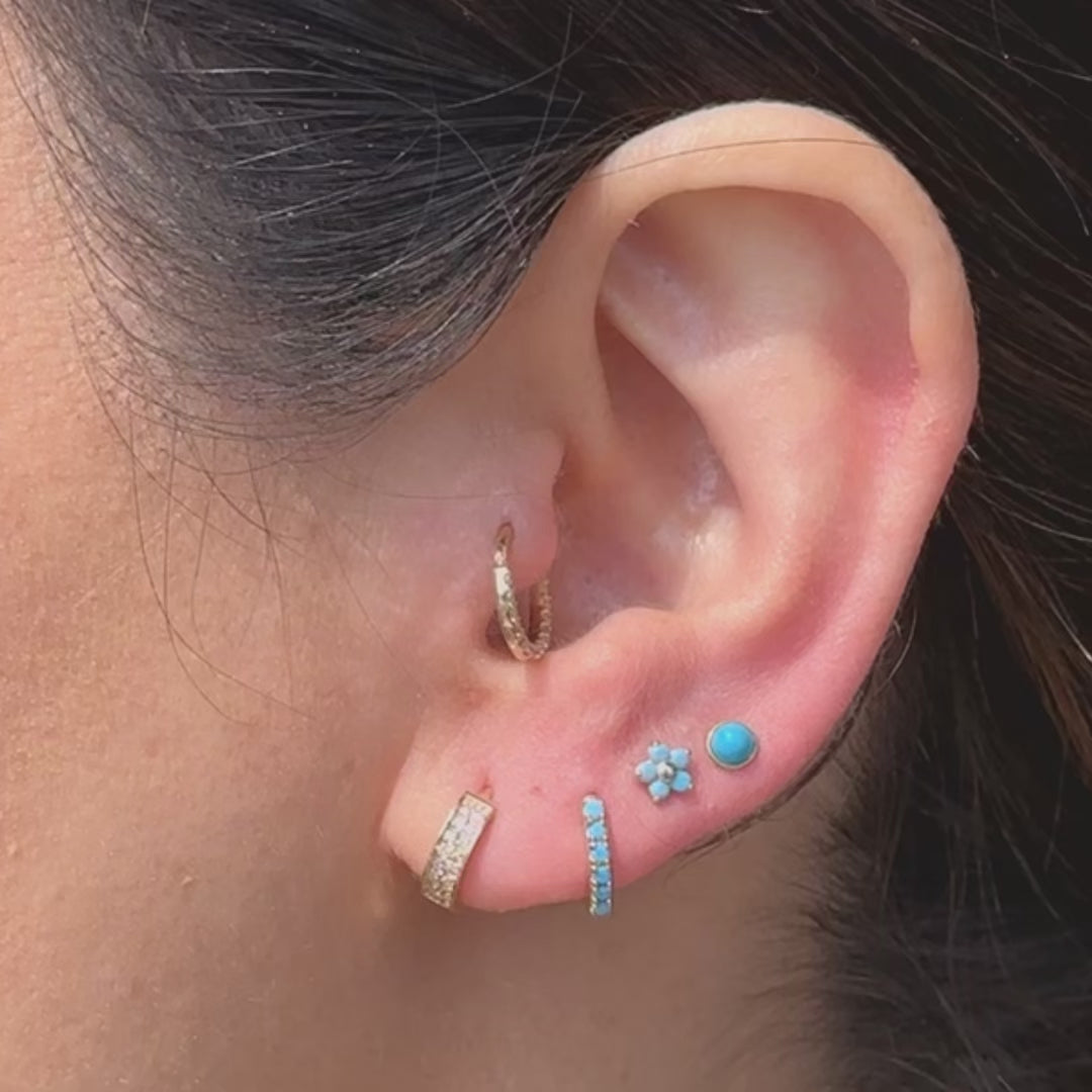 Turquoise Flower Flat Back Stud Earrings in Solid 14k White Gold