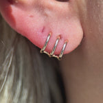 These delicately curved triple cuff studs are made in brightly polished solid 14k gold. Celebrating the beauty of simplicity, our triple wire ear cuff adds the perfect accent to your ear. It wraps around your ear cartilage or lobe, gives the illusion of multiple piercings, and can be paired with other smaller studs.
