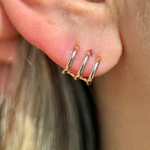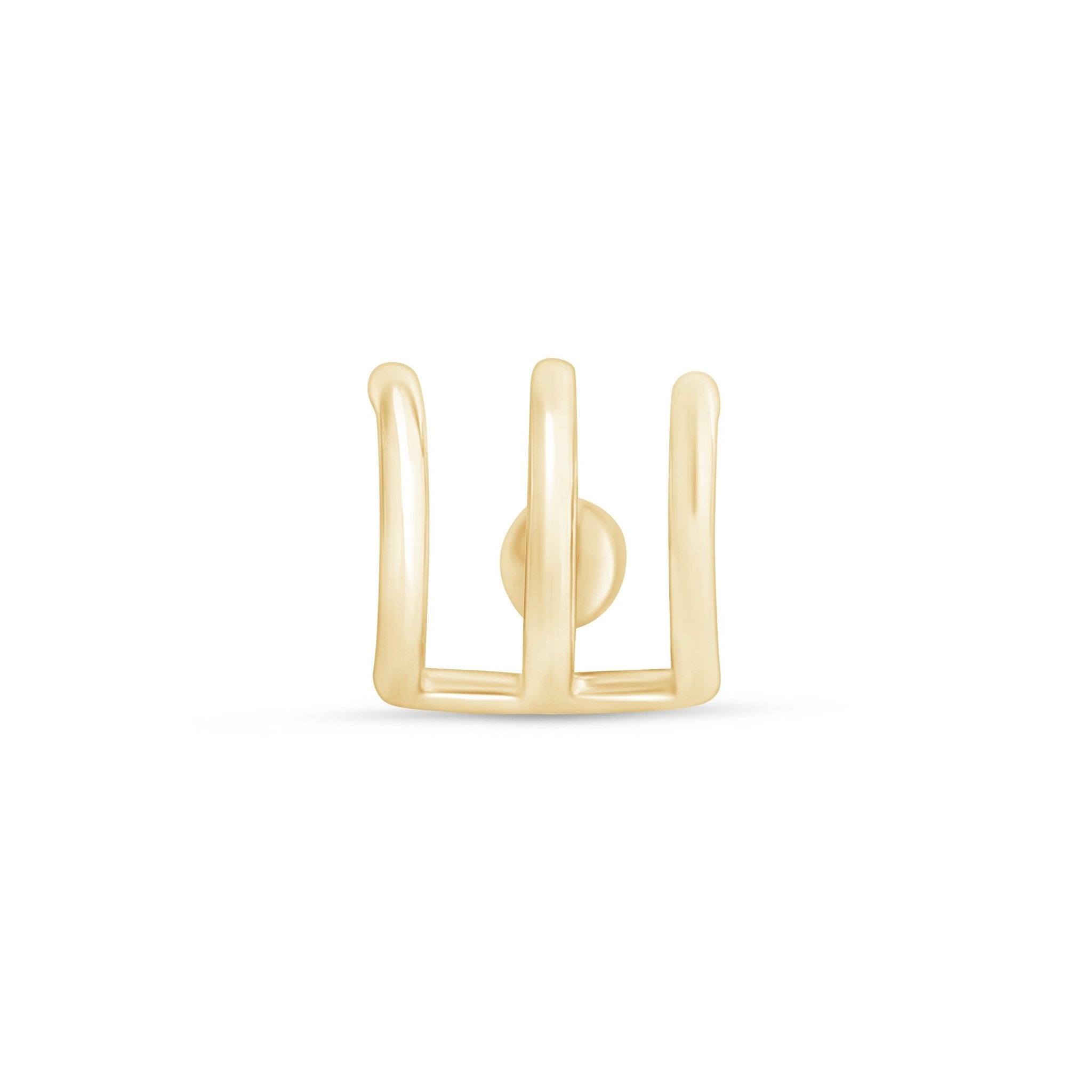 These delicately curved triple cuff studs are made in brightly polished solid 14k gold. Celebrating the beauty of simplicity, our triple wire ear cuff adds the perfect accent to your ear. It wraps around your ear cartilage or lobe, gives the illusion of multiple piercings, and can be paired with other smaller studs.