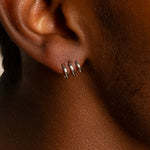 Triple Illusion Hoop Ball Back Huggie Stud in Solid 14k Yellow Gold