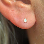 Solid 14k Gold Teardrop Opal Milgrain Stud Earring