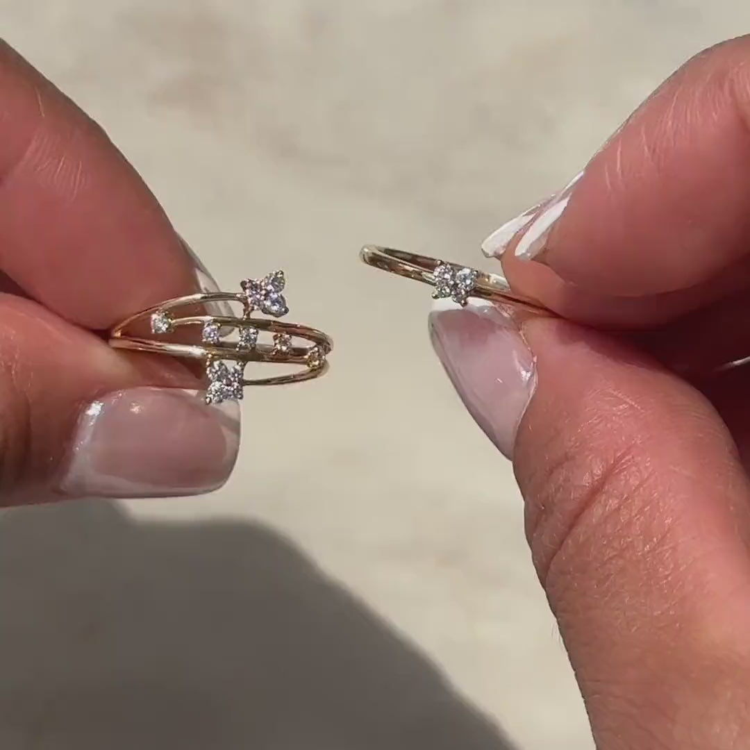 Diamond Butterfly Ring in Solid 14k Yellow Gold