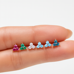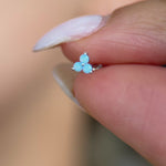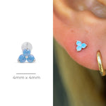 Blue Opal Trinity Cluster Flat Back Stud Earrings in Solid 14k White Gold