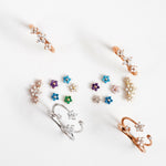 These dainty created Opal flower studs will remind you of Spring's first blooms. These earrings are made in hypoallergenic solid 14k gold perfect for frequent wear and all occasions.