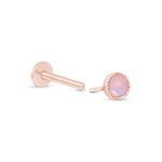 Pink Opal Flat Back Stud Earrings Milgrain Set in Solid 14k Rose Gold