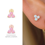 Pink Opal Trinity Cluster Flat Back Stud Earrings in Solid 14k Yellow Gold