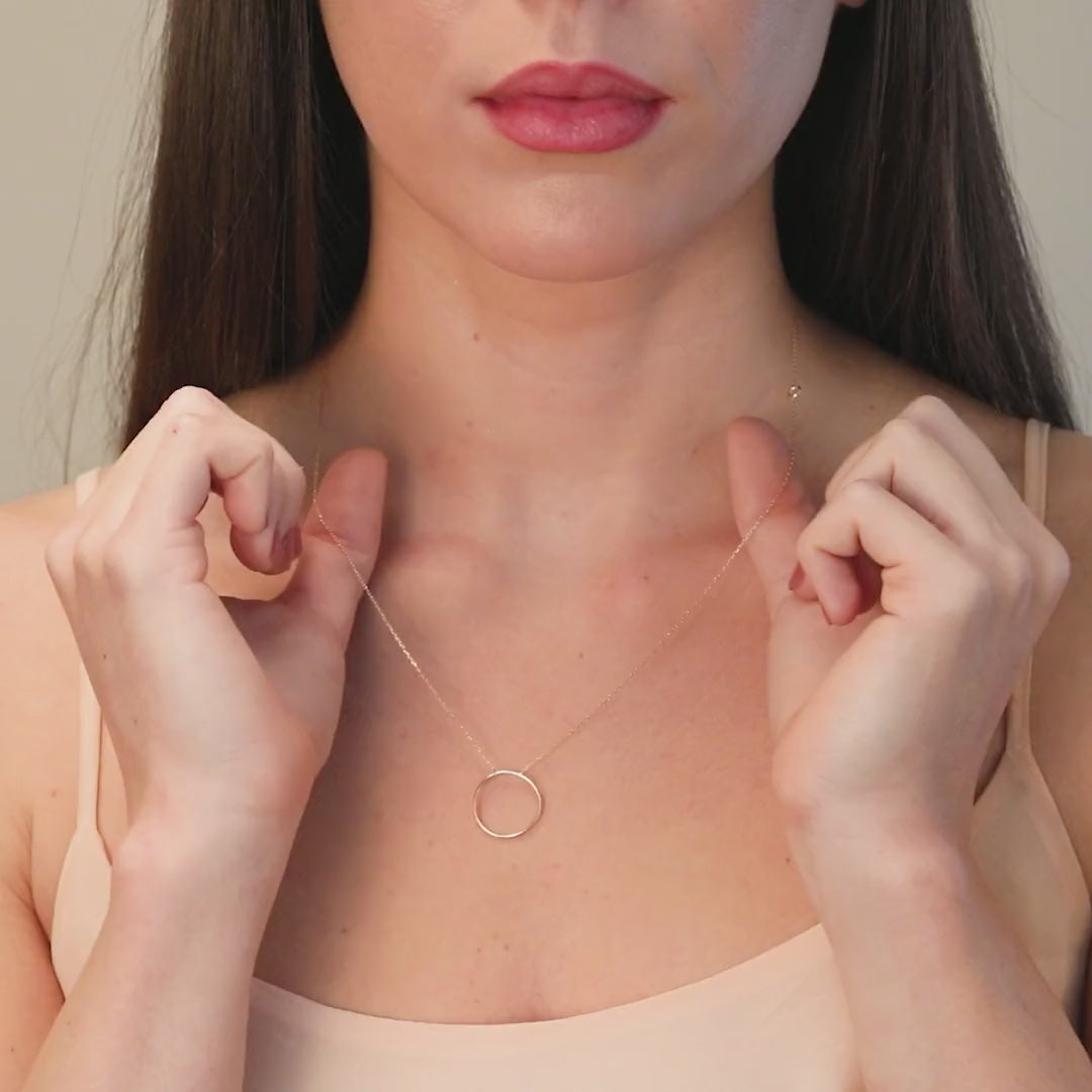 Eternity circles represent never-ending love or commitment. Finely crafted in brightly polished 14k yellow gold, this slender circle is set into a delicate chain that is adjustable to either 21, 17 or 20 inches. It is the perfect piece to layer with other necklaces.