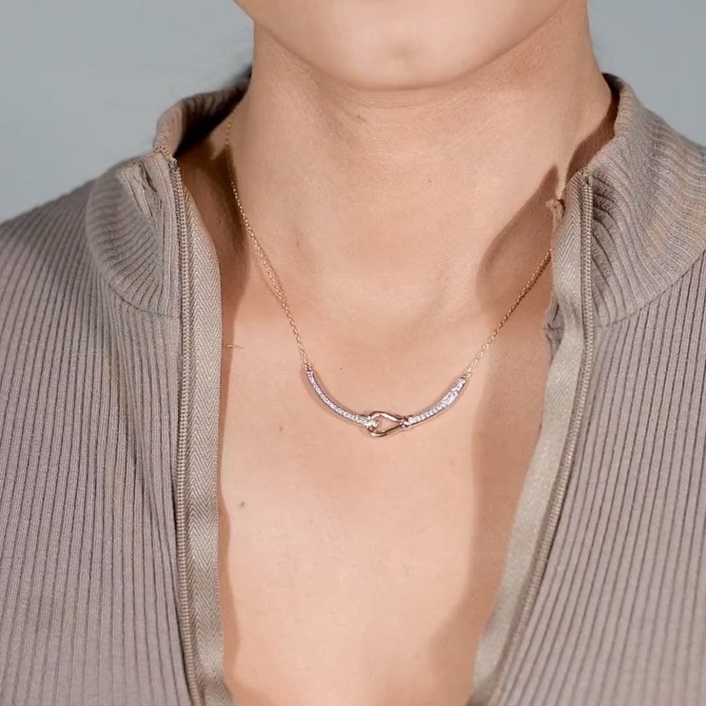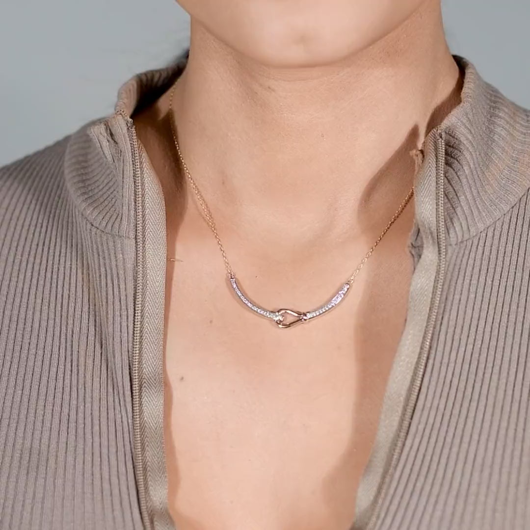 Diamond and Gold Loop Bar Necklace in Solid 10k Yellow Gold
