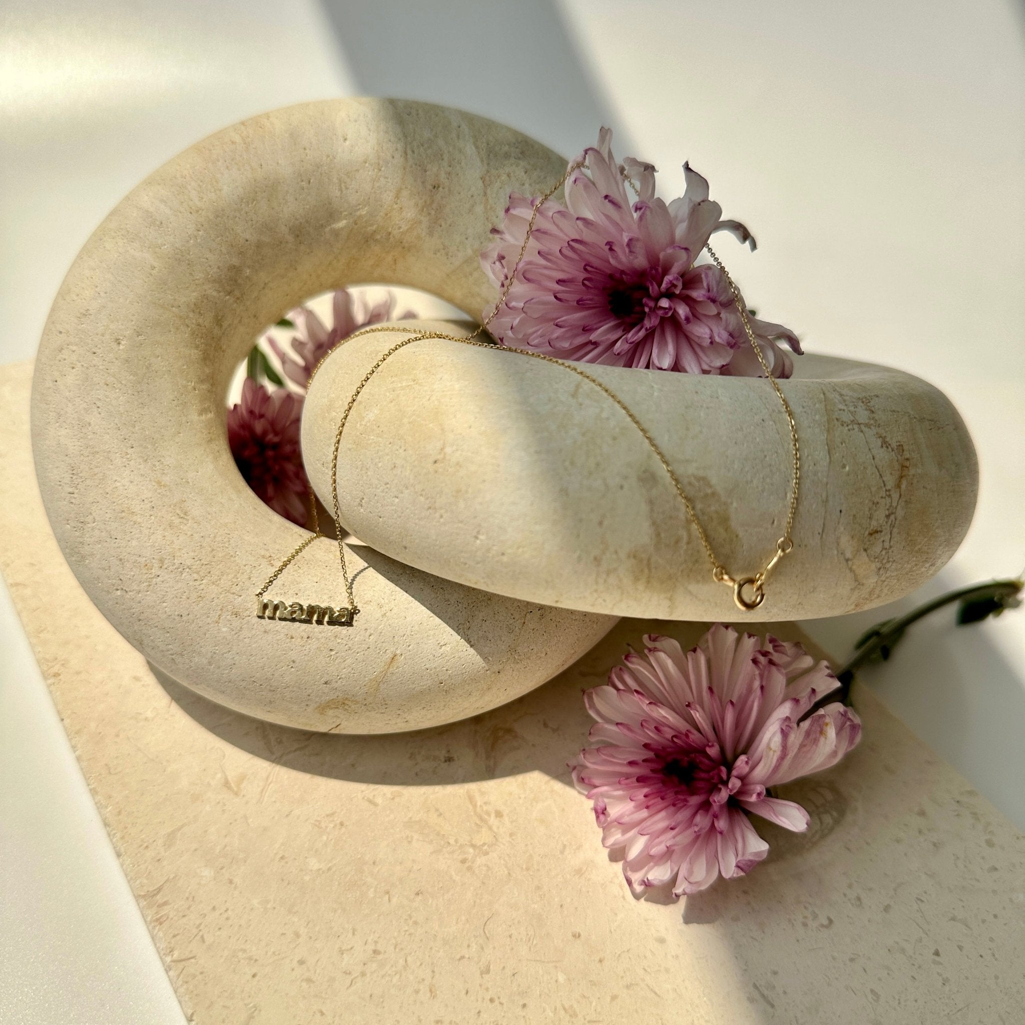 Our 14k gold mama necklace is a beautiful expression of love and affection, meticulously crafted in solid 14k gold. this elegant piece features the word 'mama' in a charming script, making it a perfect tribute to motherhood. the graceful design adds a touch of sophistication, making it an ideal gift for moms or a meaningful addition to your jewelry collection. whether worn every day or for special occasions, this necklace is a timeless piece that celebrates the special bond of motherhood.