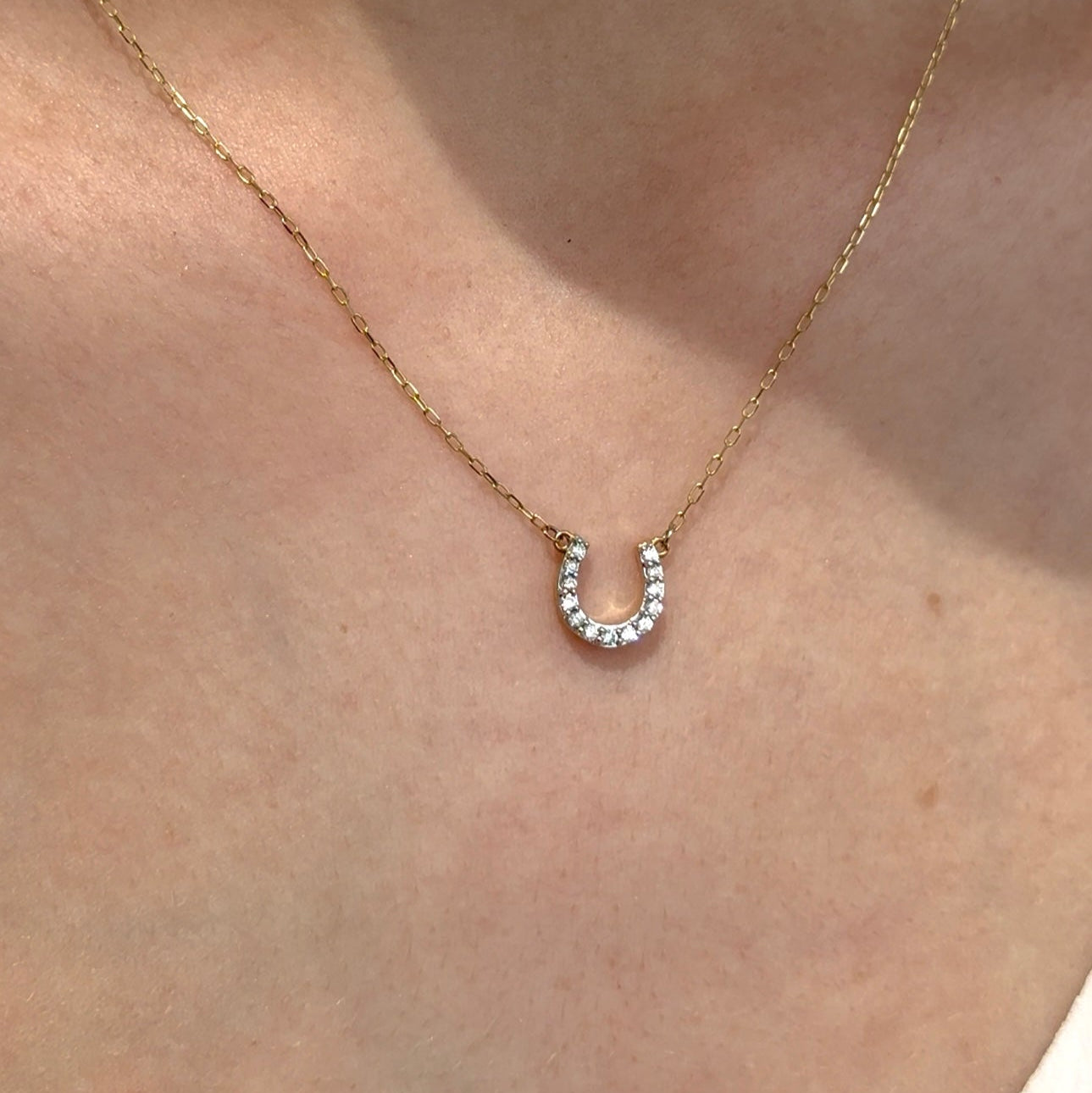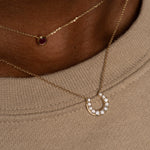 Lucky Diamond Pavé Horseshoe Pendant Necklace in Solid 14k Yellow Gold