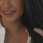 This dainty aquamarine station necklace is perfect for everyday wear. Bezel set in solid 14k gold, available in 2 sizes, and adjustable at 2 lengths... the ultimate March birthstone necklace.