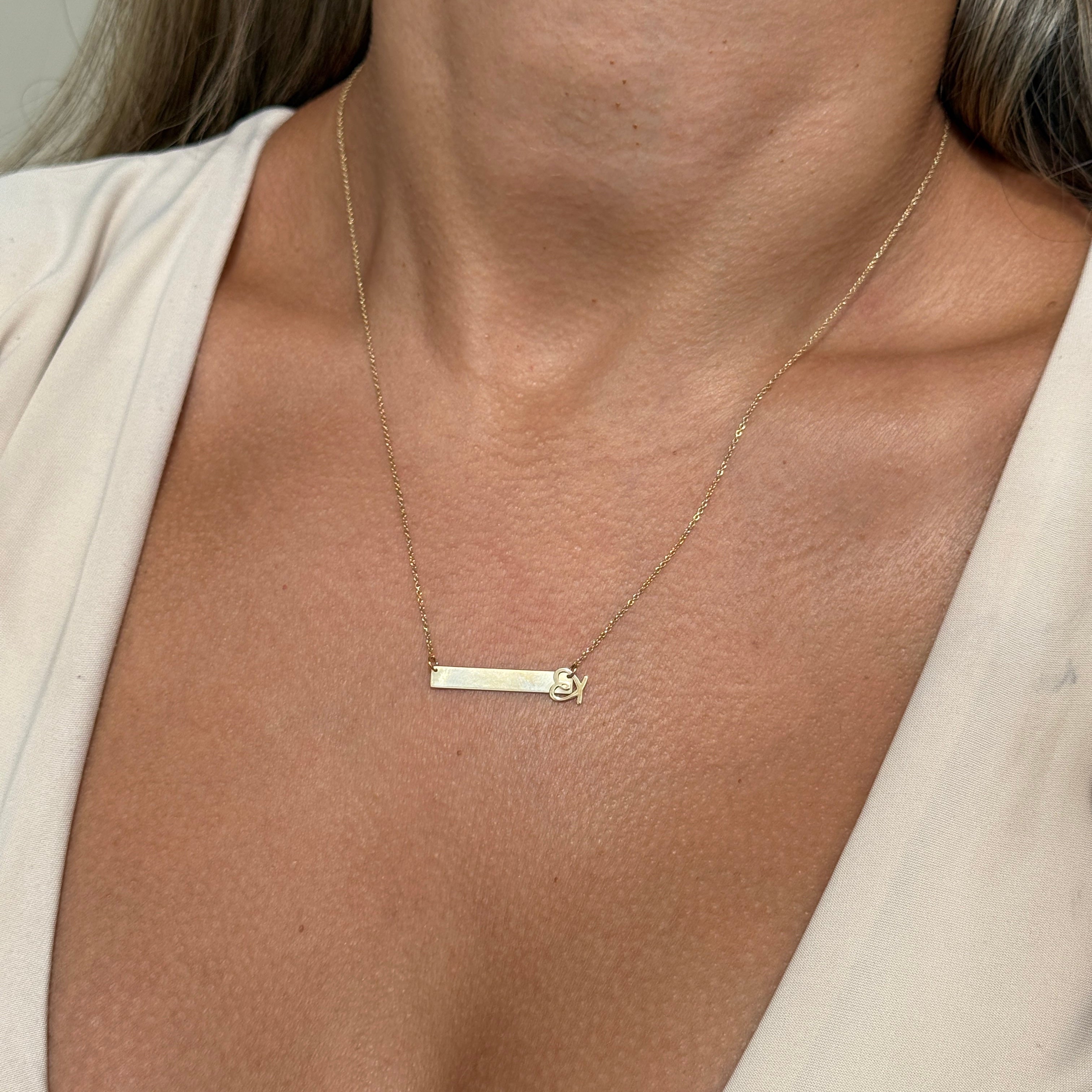 Bar Monogram Nameplate Necklace Gold in Solid 10k Yellow Gold