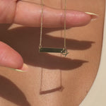 Personalize your fine jewelry with this bar pendant necklace. This nameplate necklace is designed to fit in with your everyday outfits. We can laser inscribe any initials to make this an extremely personal gift. It is versatile enough to be worn on its own or paired with one of our other necklaces. The chain is adjustable to be 16" or 14" in length.