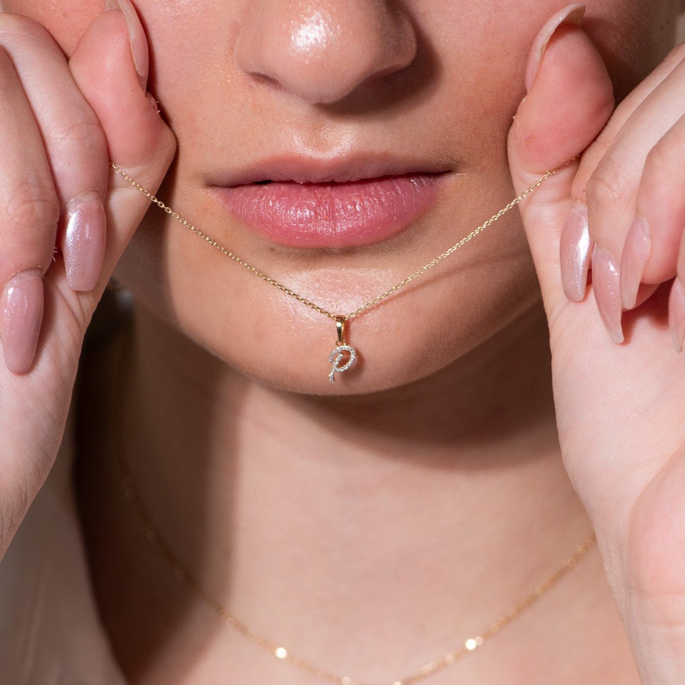 Cursive Diamond Initial Necklace in Solid 14k Yellow Gold - P