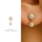 Double Diamond Drop Flat Back Stud Earrings in Solid 14k Yellow Gold