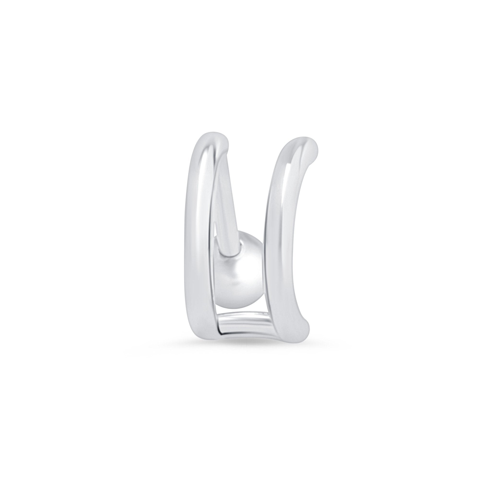Double Hoop Illusion Ear Cuff Earring in Solid 14k White Gold