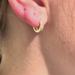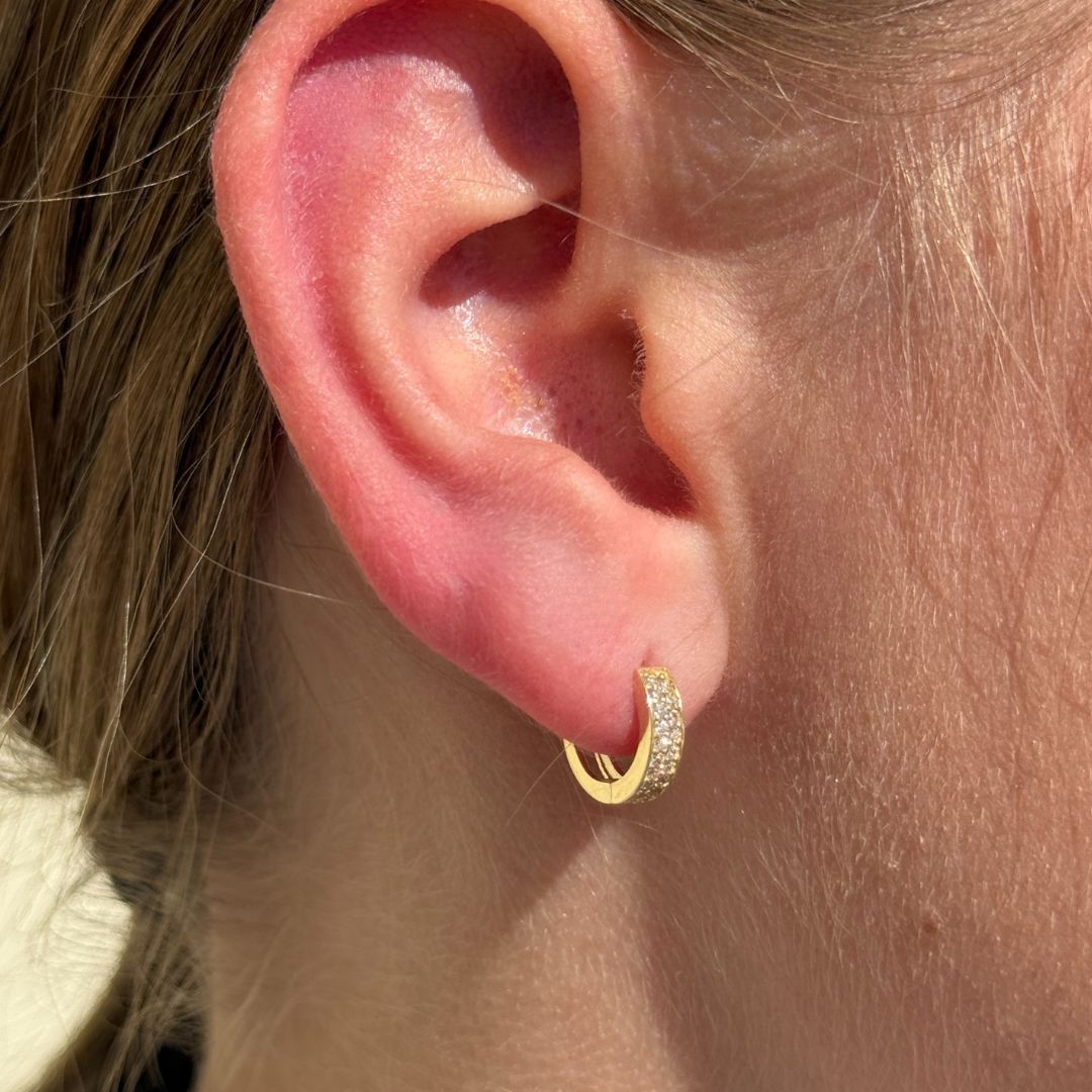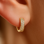 Double Row Pavé Huggie Earring in Solid 14k Yellow Gold