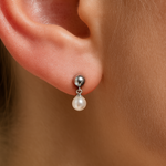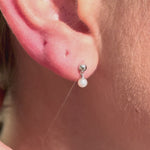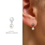 Gold and Pearl Drop Flat Back Stud Earrings in Solid 14k White Gold