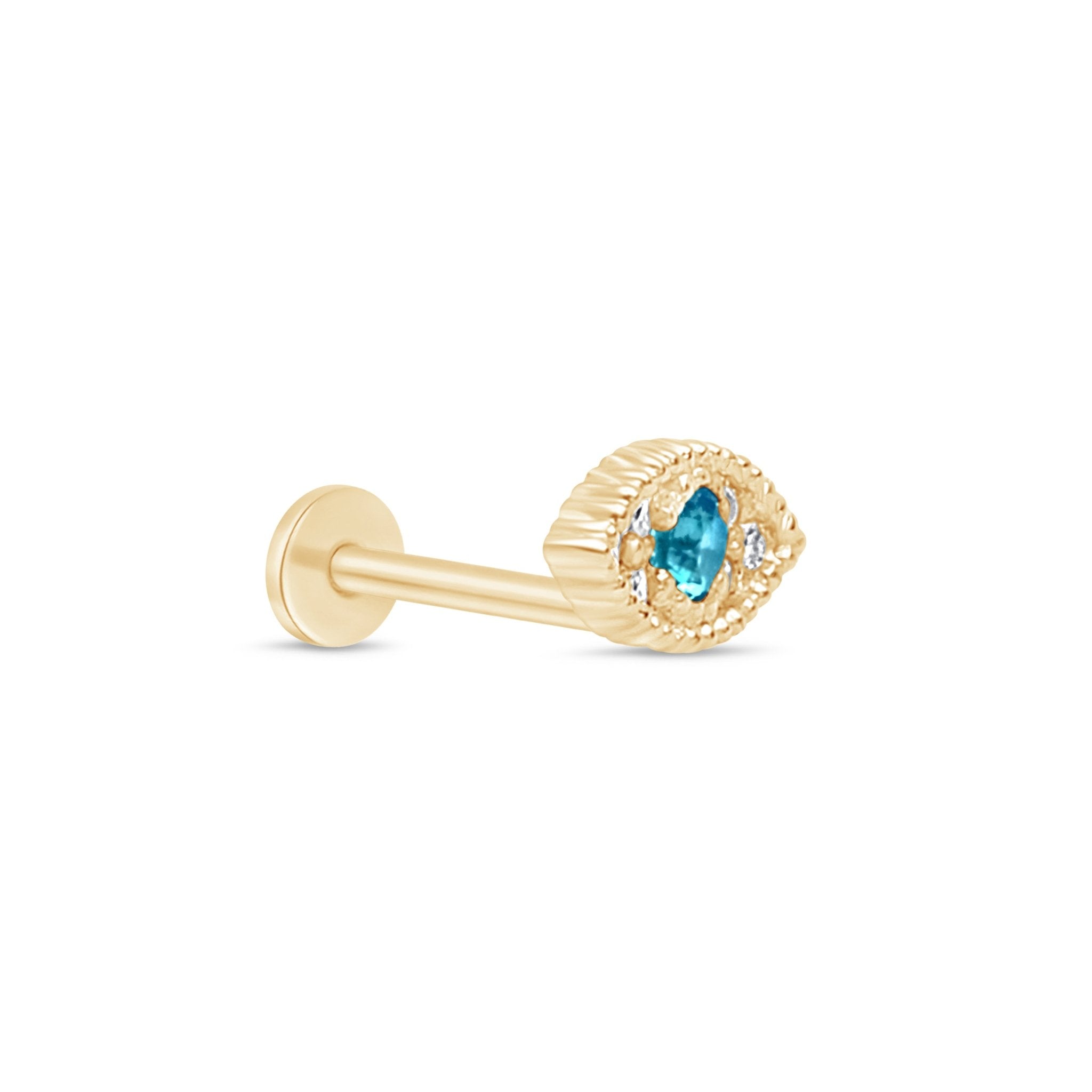 Blue Topaz Evil Eye Flat Back Stud Earrings in Solid 14k Yellow Gold
