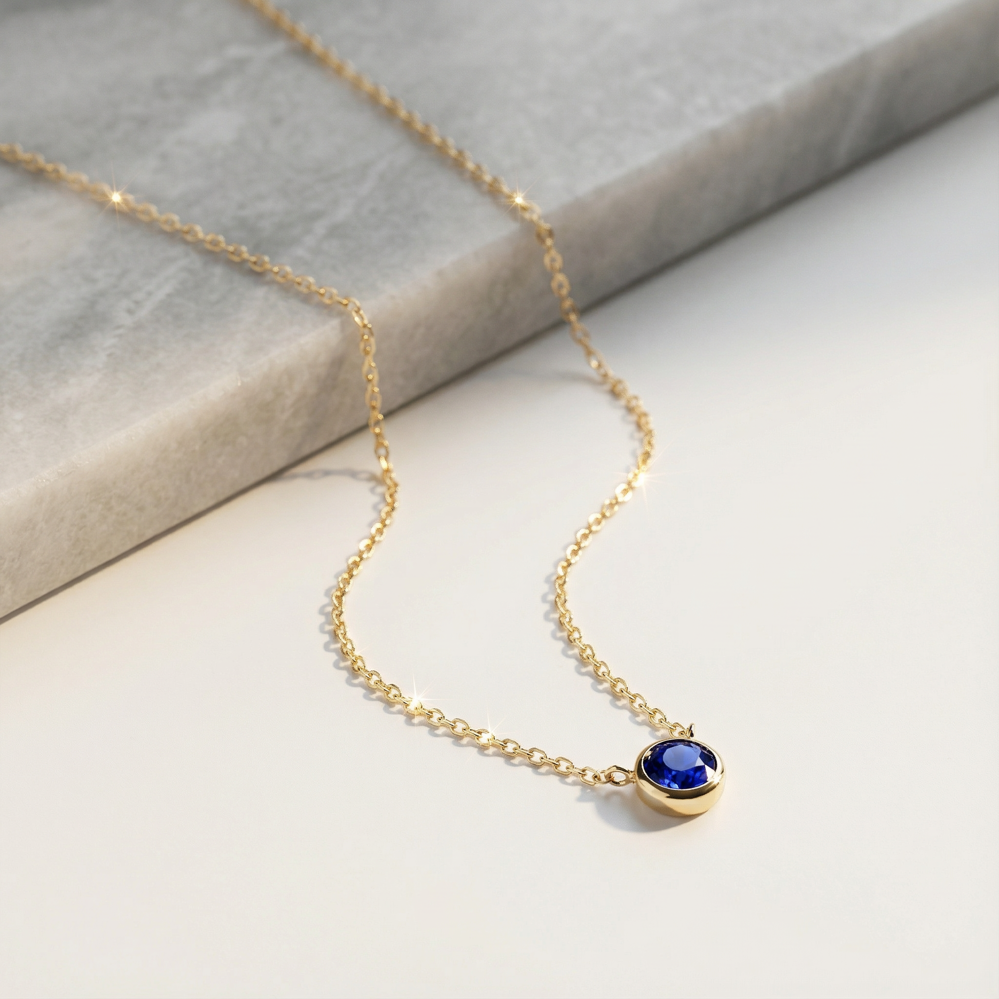 Sapphire Station Necklace Bezel Set in Solid 14k Yellow Gold