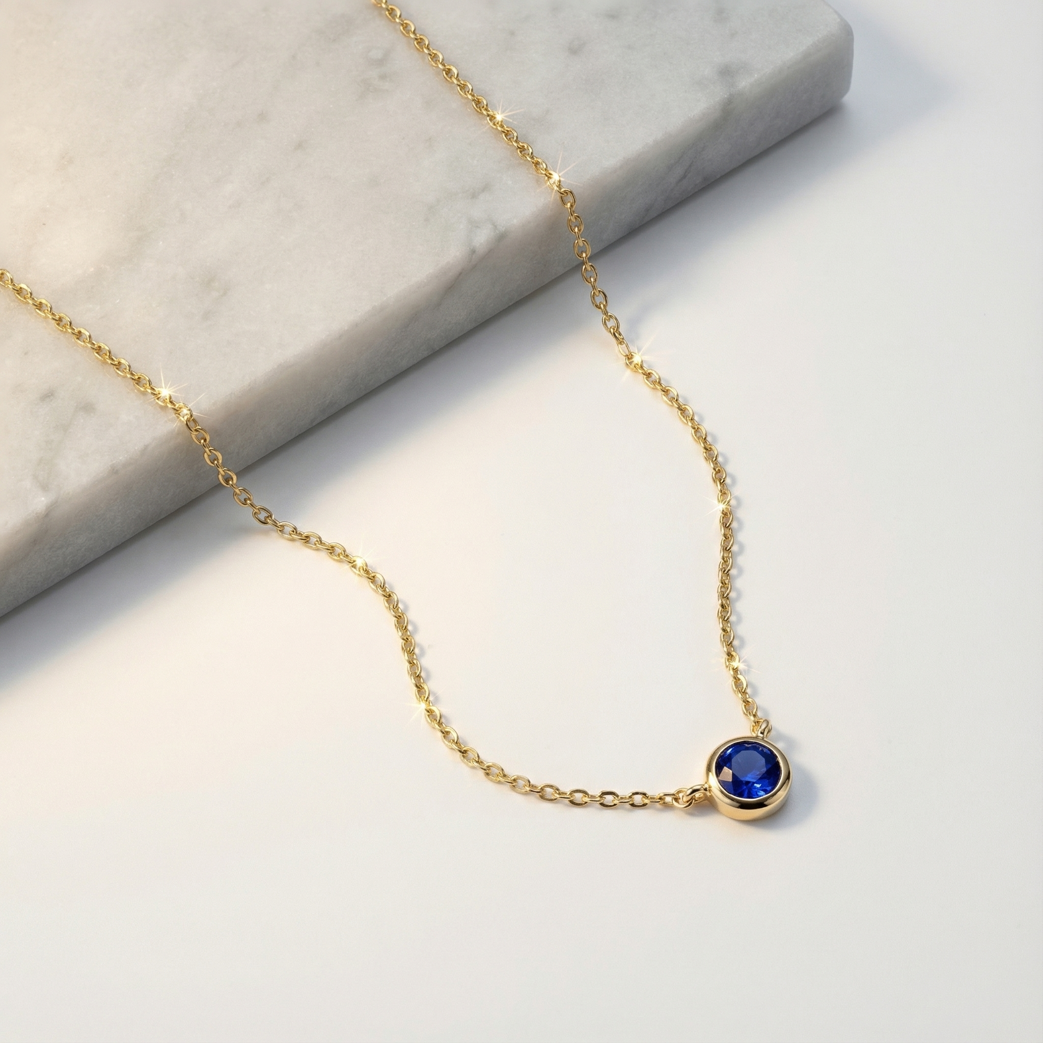 This dainty Sapphire station necklace is perfect for everyday wear. Bezel set in solid 14k gold, available in 2 sizes, and adjustable at 2 lengths... the ultimate September birthstone necklace.