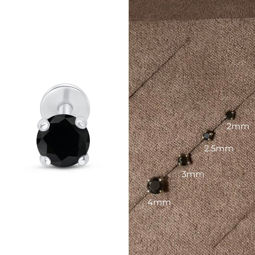 Black Diamond Cartilage Flat Back Stud Earrings in Solid 14k White Gold