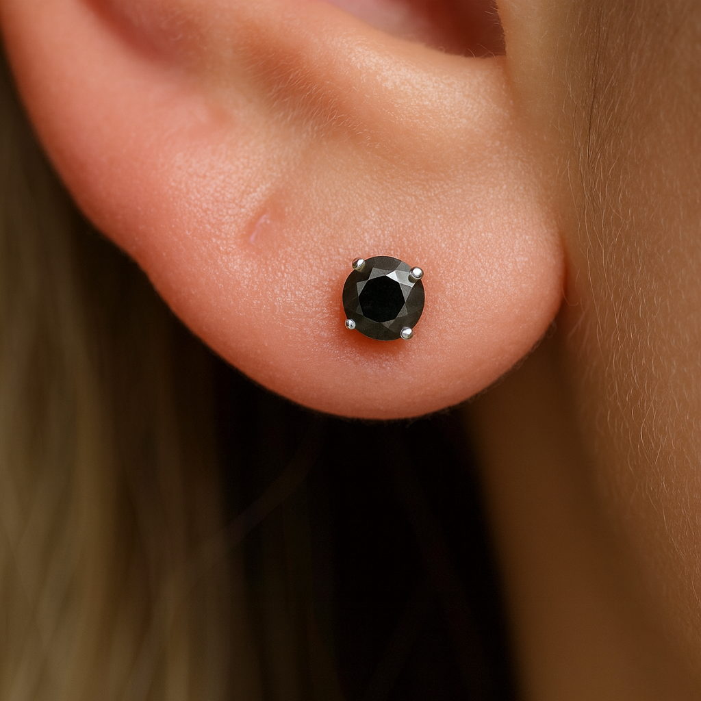 These classic black diamond studs are made in solid 14k gold with flat backs providing comfort for wear all day and night.