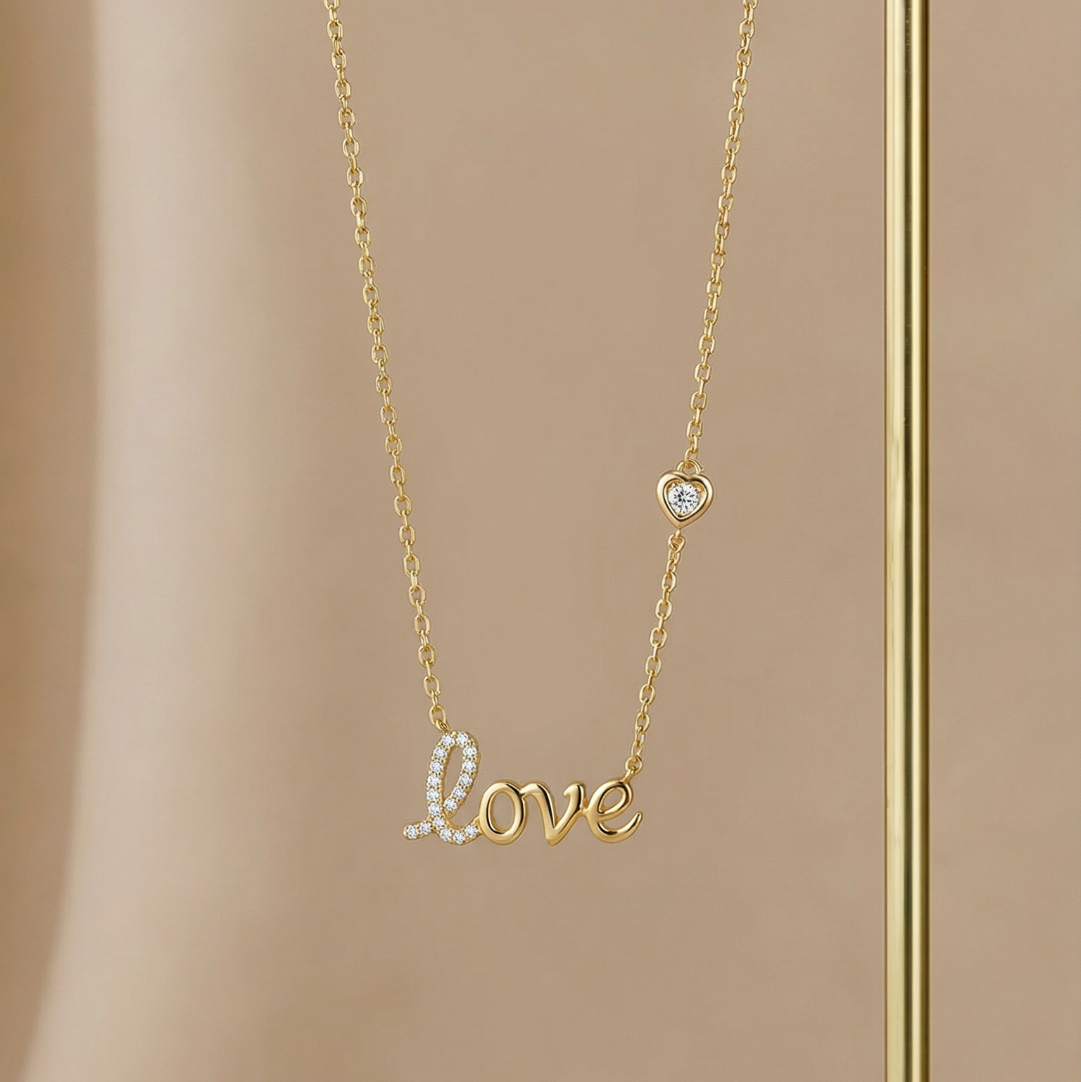 Diamond Love Necklace in Solid 14k Yellow Gold