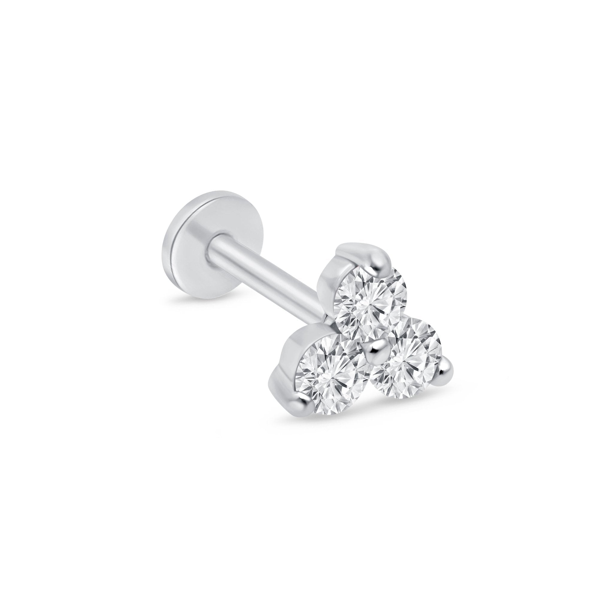 Diamond Trinity Cluster Flat Back Stud Earrings in Solid 14k White Gold