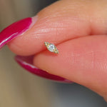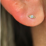 Upgrade your look with these eye-catching, premium 14k gold diamond piercing stud earrings! These high-quality studs feature marquise shape mounting with round diamonds in the center, complemented by cluster bunch bead-balls on each side that lend a decorative detail. Add a touch of decadence to your every day with these tiny diamond studs that are unique and non-irritating to the skin, making them the ultimate choice for your fresh new ear piercing. Made of hypoallergenic materials, these pretty diamond piercing studs will make a trendy statement that can be paired alongside your other neighboring ear holes if desired.