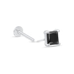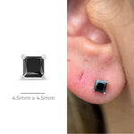 Black Onyx Princess Cut Flat Back Stud Earrings in Solid 14k White Gold