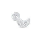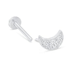 Stone Studded Crescent Moon Flat Back Stud Earrings in Solid 14k White Gold