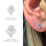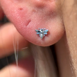 Minimalist Bee Flat Back Stud Earrings in Solid 14k White Gold