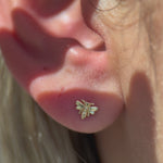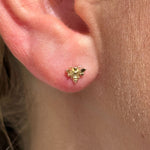 Minimalist Bee Flat Back Stud Earrings in Solid 14k Yellow Gold