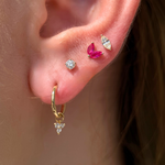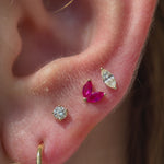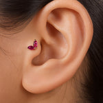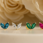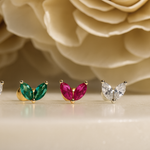 These flat back earrings are delicate and elegant, designed to capture the beauty of nature in their design. The earring features two ruby petal motifs, symmetrically arranged to create a timeless but colorful treasure.