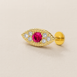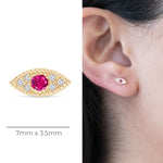 Ruby Evil Eye Flat Back Stud Earrings in Solid 14k Yellow Gold