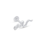 Snake Flat Back Stud Earrings with Stone in Solid 14k White Gold