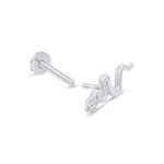 These high-quality 14k white gold hypoallergenic piercingsnake studs are perfect for those who want a modern look for their freshest piercing. Designed in a bright polished finish, these lightweight, premium quality studs feature sparkling cubic zirconia is bezel set, adding a bit of sparkle with luxe appeal to your existing or new ear piercing. Perfect for pairing with hoops and other studs on neighboring ear holes.