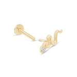These high-quality 14k yellow gold hypoallergenic piercing snake studs are perfect for those who want a modern look for their freshest piercing. Designed in a bright polished finish, these lightweight, premium quality studs feature sparkling cubic zirconia is bezel set, adding a bit of sparkle with luxe appeal to your existing or new ear piercing. Perfect for pairing with hoops and other studs on neighboring ear holes.