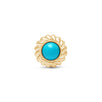 These created Turquoise studs add a vibrant pop of blue to your outfit. The beautiful braided gold detailing adds an elegant finishing touch. Crafted in brightly polished solid 14k gold, these lightweight and hypoallergenic flat-back earrings are perfect for everyday wear.