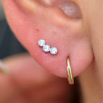 These high-quality, dainty earrings feature three stones on each premium piercing stud, sparkling with the vibrant stone color of your selection. Designed in brightly polished 14k solid gold and made with non-irritating, hypoallergenic materials that are soft on the skin, these piercing studs are perfect for adding a refreshing color that is right on-trend. Sweet and feminine is perfect for anyone on trend, these colorful cluster 3-stone gold petite studs are a perfect way of celebrating your newest ear piercing.