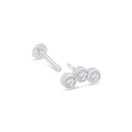 Triple Gemstone Flat Back Stud Earrings Milgrain Set in Solid 14k White Gold