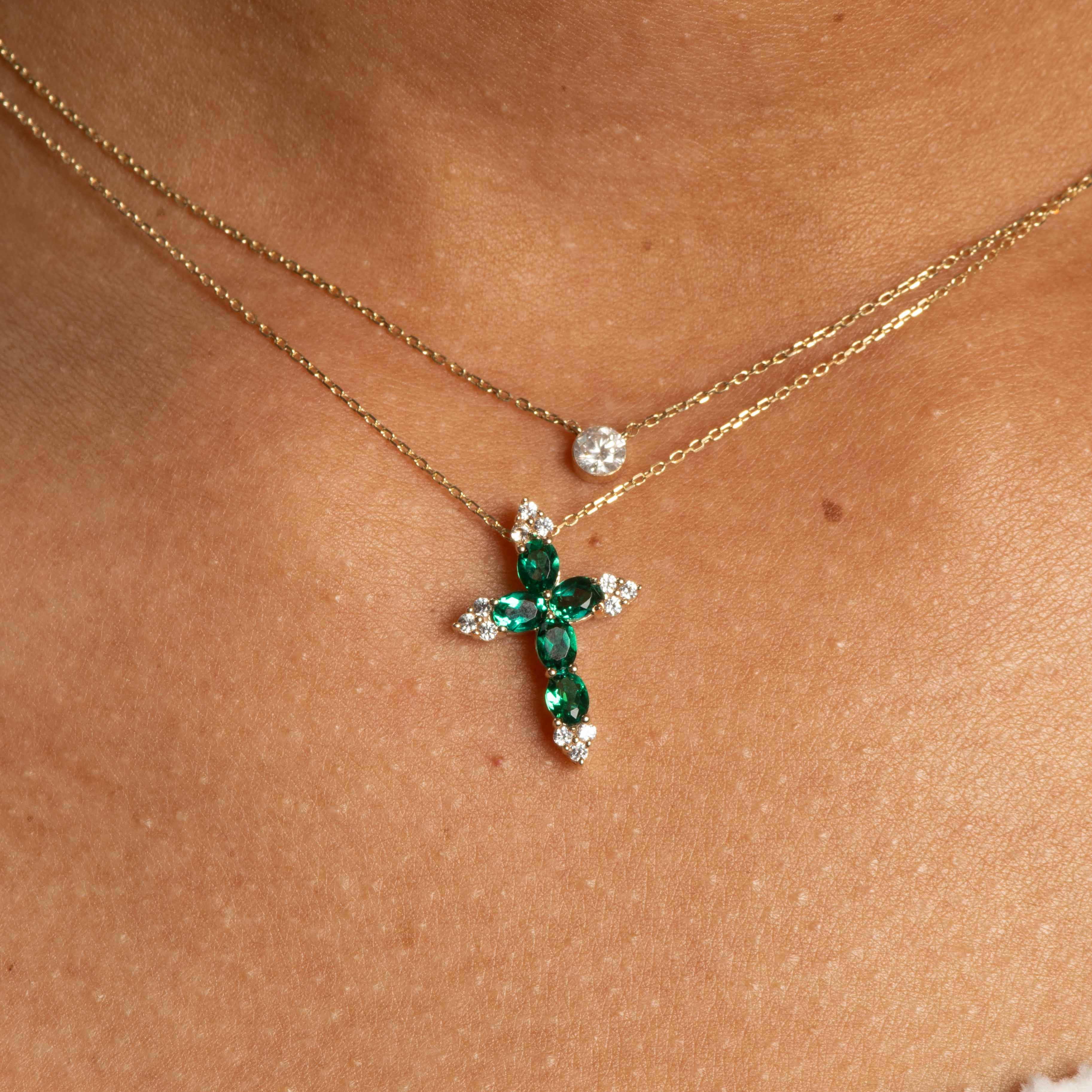 Emerald and White Sapphire Cross Pendant Necklaces Estella Collection #product_description# 32715 10k Birthstone Birthstone Jewelry #tag4# #tag5# #tag6# #tag7# #tag8# #tag9# #tag10#