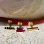 Created in a bright shine finish, these black onyx studded bar stud earrings have a punk rock vibe that is the perfect look for your ear piercing! Designed in 14k gold in a bright polish, These gold piercing studs are perfect for everyday wear. Mix and match this super-glam stud with other hoops and studs for a different look each time.