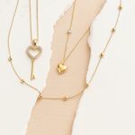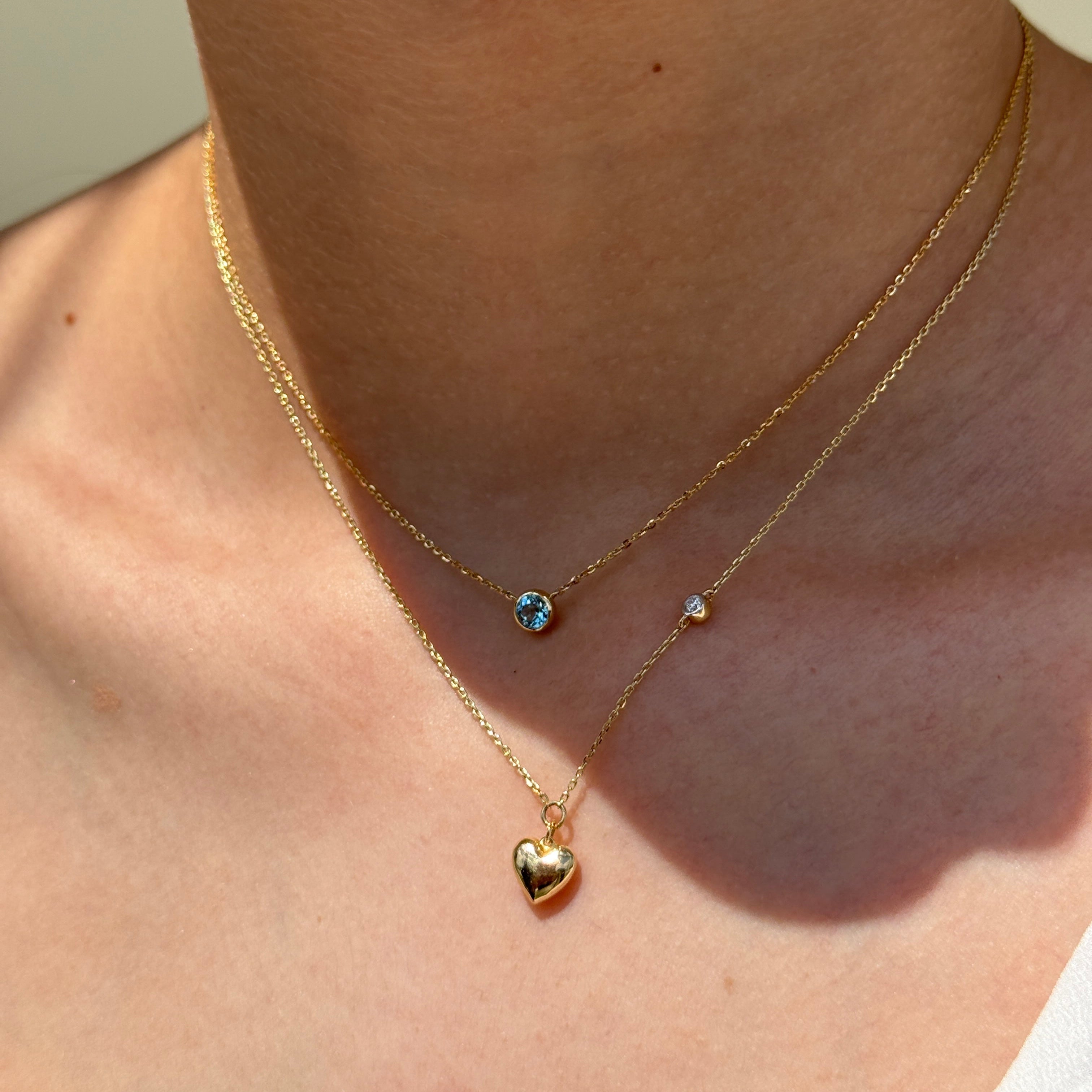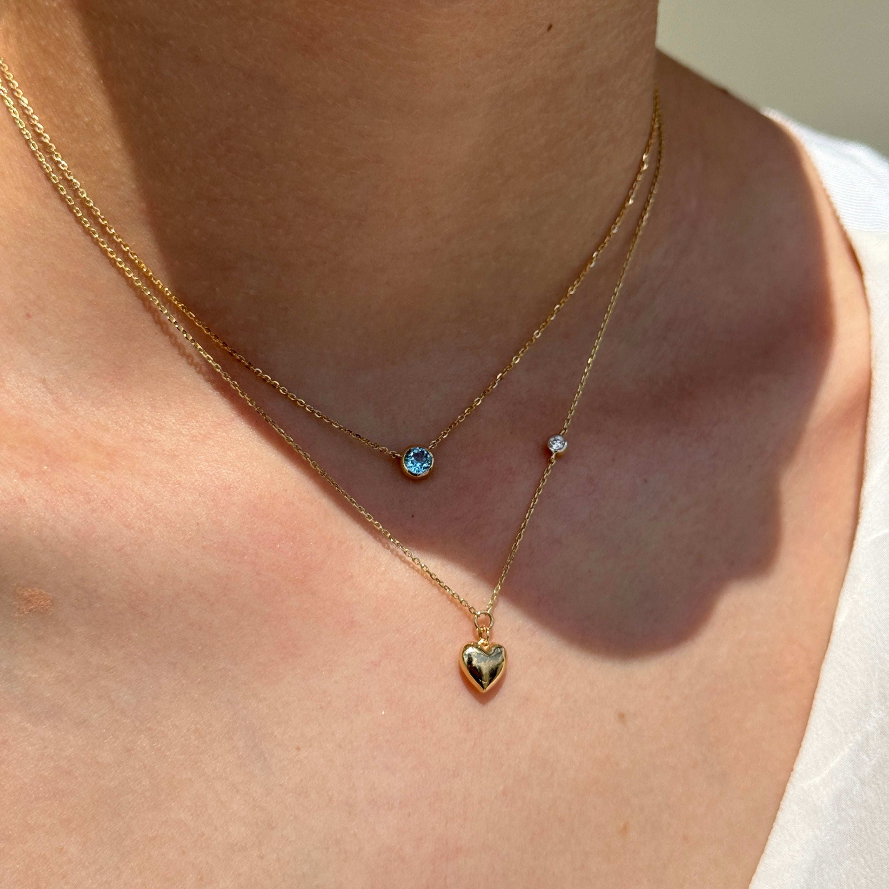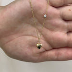 Bubble Heart and Diamond Station Necklace in Solid 14k Yellow Gold