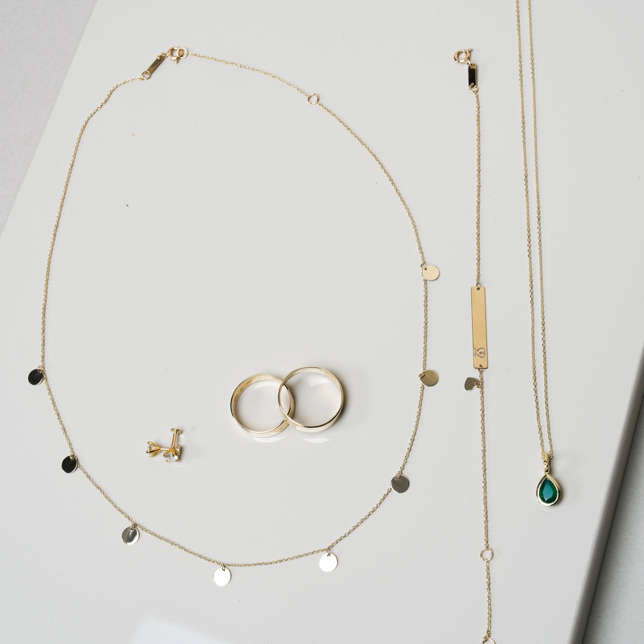 Why settle for the ordinary when you can curate the extraordinary? At Estella Collection, we believe in giving your creativity the reins. From adjustable necklace lengths and the allure of earring chains to our soon-to-be-introduced charm additions, our custom 14k gold jewelry services are designed to resonate deeply with your personal taste and essence. Opt for personalized engraving or a distinct color plating, and watch as your vision comes to life.