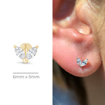 Cubic Zirconia Double Marquise Flat Back Stud Earrings in Solid 14k Yellow Gold