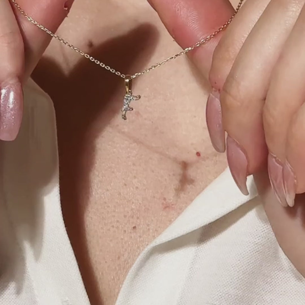 Cursive Diamond Initial Necklace in Solid 14k Yellow Gold - F